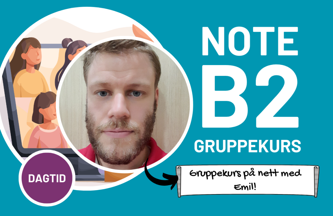 Ønsker du å bli tryggere på norsk, både muntlig og skriftlig? Dette praktiske og engasjerende gruppekurset bygger videre på vårt NOTE B2-nettkurs, og går dypere inn i temaene som er viktige for deg. Her får du solid trening i grammatikk, skriving, lesing, lytting og muntlig kommunikasjon, slik at du kan bruke språket mer naturlig i hverdagen.